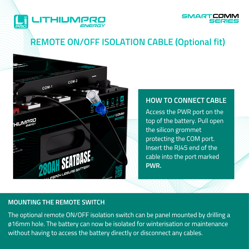 Version 2 now includes a panel-mountable remote isolation lead, allowing you to conveniently switch the battery ON or OFF for maintenance or storage without needing direct access to the battery.