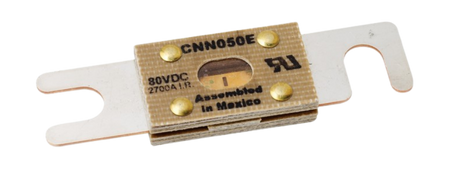 The key specification is its High Interrupting Rating (or AIC – Ampere Interrupting Capacity). This is the maximum fault current the fuse can safely stop. Standard fuses used for Lead-Acid batteries typically have a low interrupting rating. Such as a MEGA or MIDI fuse. Lithium battery banks require a more robust fuses designed to withstand and extinguish the immense electrical arc that forms when it interrupts the incredibly high currents a lithium battery can deliver. Without this high rating, a standard fuse can fail catastrophically, essentially fail in a ‘closed-circuit’ scenario by the arc in the fuse welding the fuse together and allowing the current to still flow rather than break in an ‘open-circuit’ stopping the flow of current immediately.